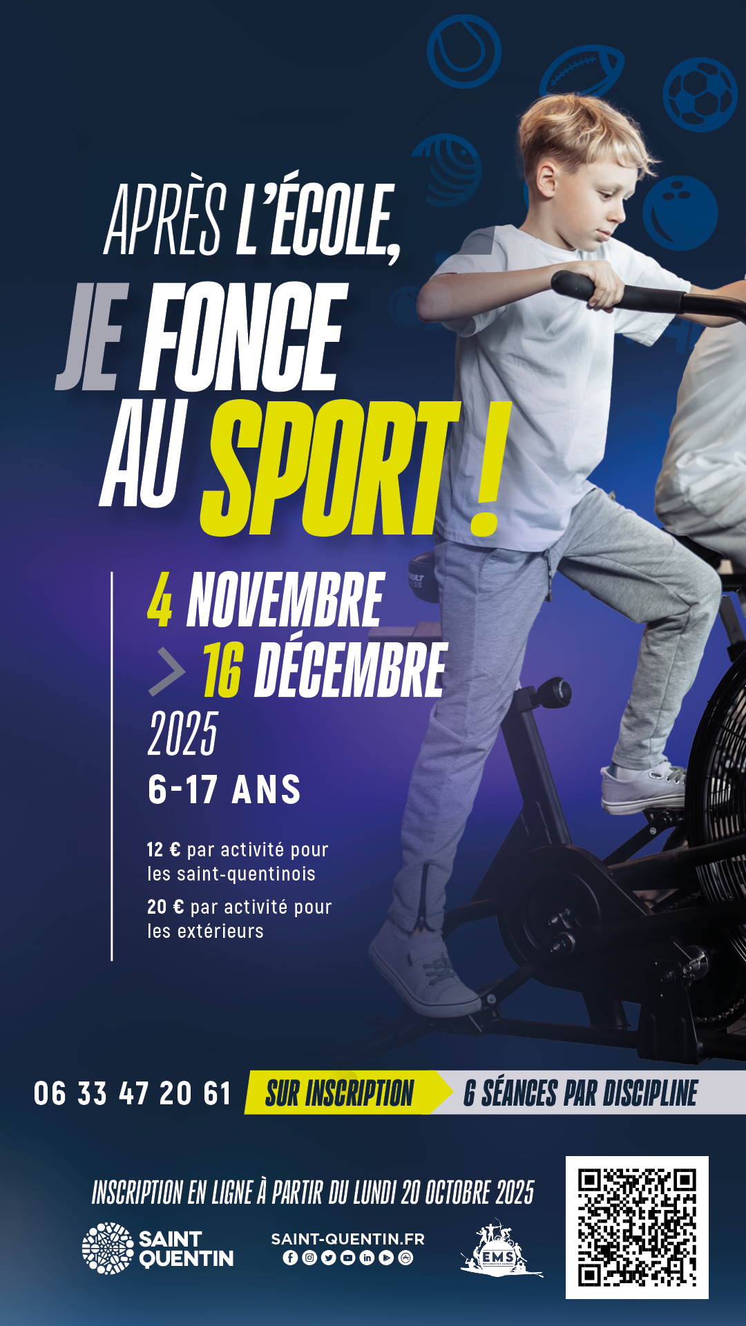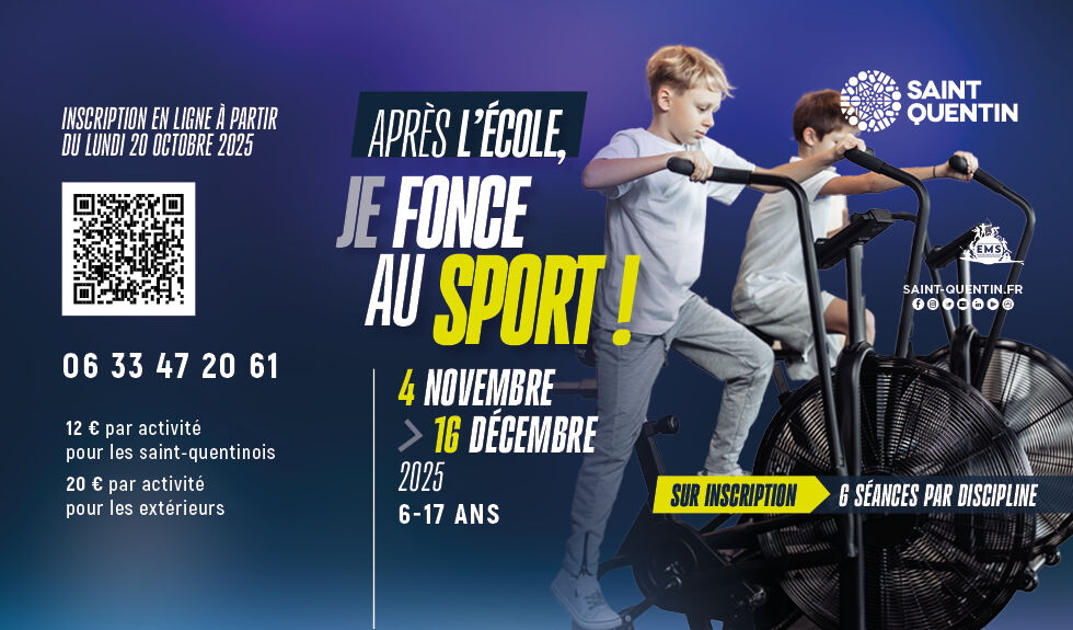 Inscription à partir du lundi 20 octobre de 8h30 à 12h / 13h30 à 17h30 au 53 rue Henri Dunant à Saint-Quentin ou sur l'espace citoyen.