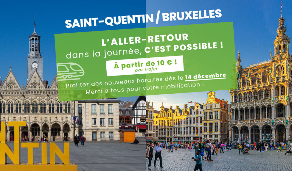 Quelques mois après l’ouverture de la ligne et grâce à une mobilisation accrue des Saint-Quentinois et des partenaires, de nouvelles dessertes permettront, dès le 14 décembre prochain, de pouvoir partir le matin à Bruxelles et rentrer le soir à Saint-Quentin.
