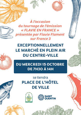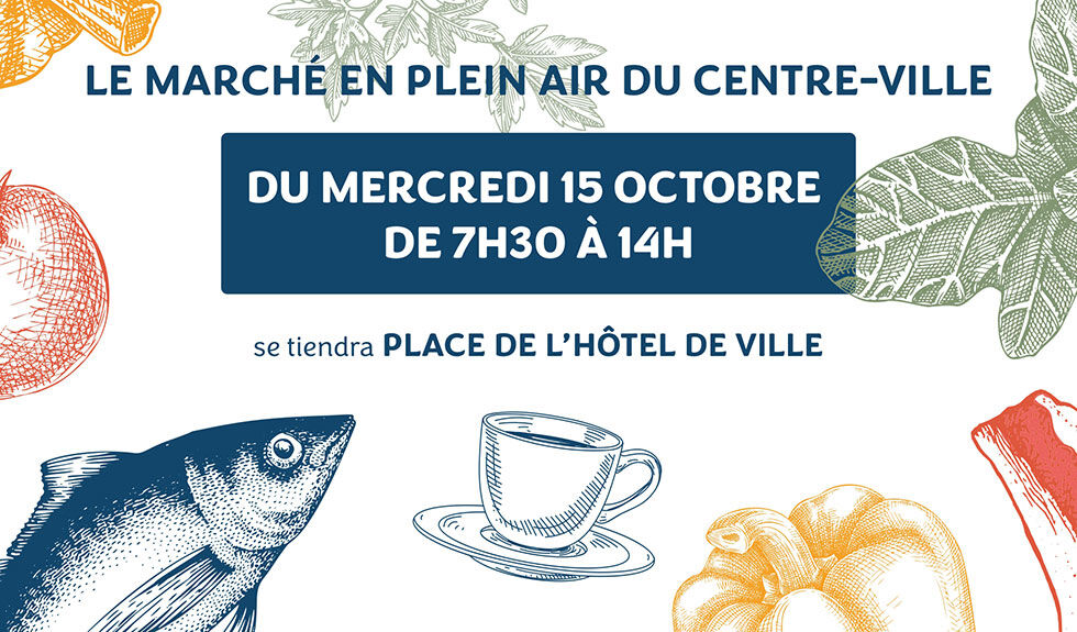 Le marché en plein air du centre-ville mercredi 15 octobre de 7h30 à 14h se tiendra exceptionnellement sur la place de l’Hôtel de Ville.
