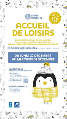 Les accueils de loisirs d’hiver commenceront du lundi 22 au mercredi 31 décembre 2025