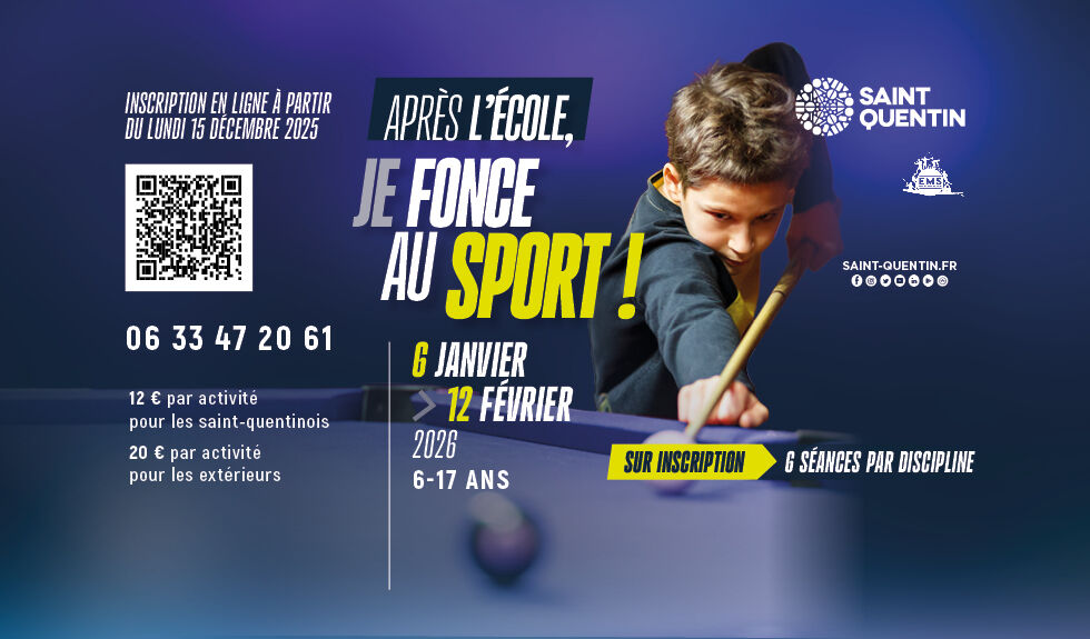 Du 6 janvier au 12 février 2026, les jeunes de 6 à 17 ans peuvent découvrir de nouvelles disciplines sportives à Saint-Quentin !