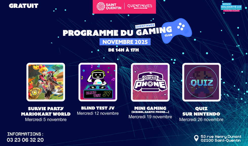 Retrouvez le programme du gaming club de novembre :