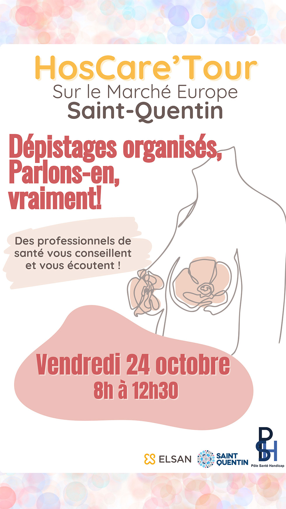 Ce vendredi 24 octobre, le Hoscare’Tour par Elsan sera présent sur le Marché Europe à Saint-Quentin de 8h à 12h30.