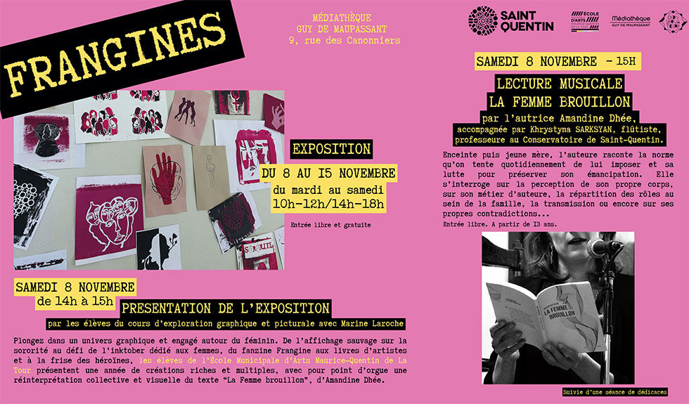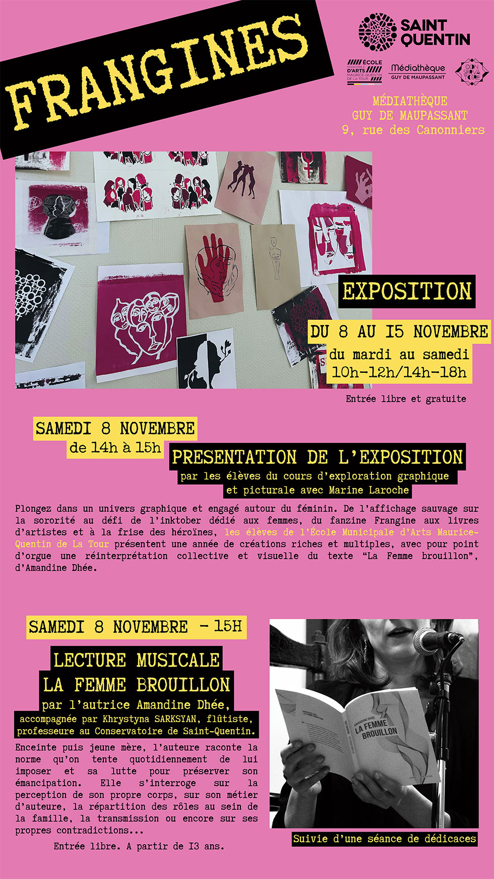 Du 8 au 15 novembre, plongez dans un univers graphique et engagé autour du féminin avec l’exposition "Frangines", présentée à la Médiathèque Guy de Maupassant (9, rue des Canonniers à Saint-Quentin).
