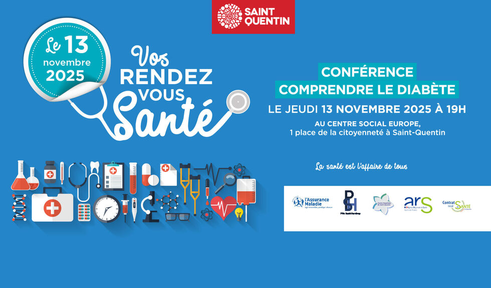 Nous vous invitons à participer à une conférence dédiée au diabète, le jeudi 13 novembre à 19h, au Centre Social Europe (1, place de la Citoyenneté à Saint-Quentin).