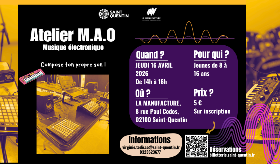 Le jeudi 16 avril 2026, de 14h à 16h, l’Atelier M.A.O t’ouvre ses portes pour une initiation accessible et conviviale.